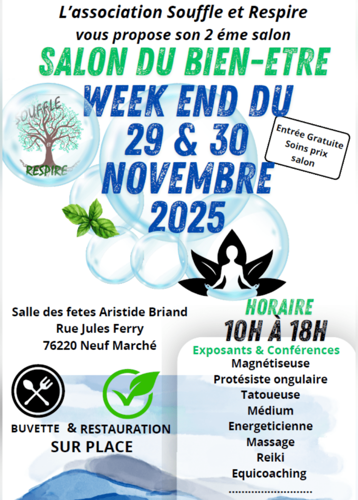 Le Salon du Bien-Être revient les 29 et 30 Novembre 2025 à la salle des fêtes de Neuf Marché (26220).